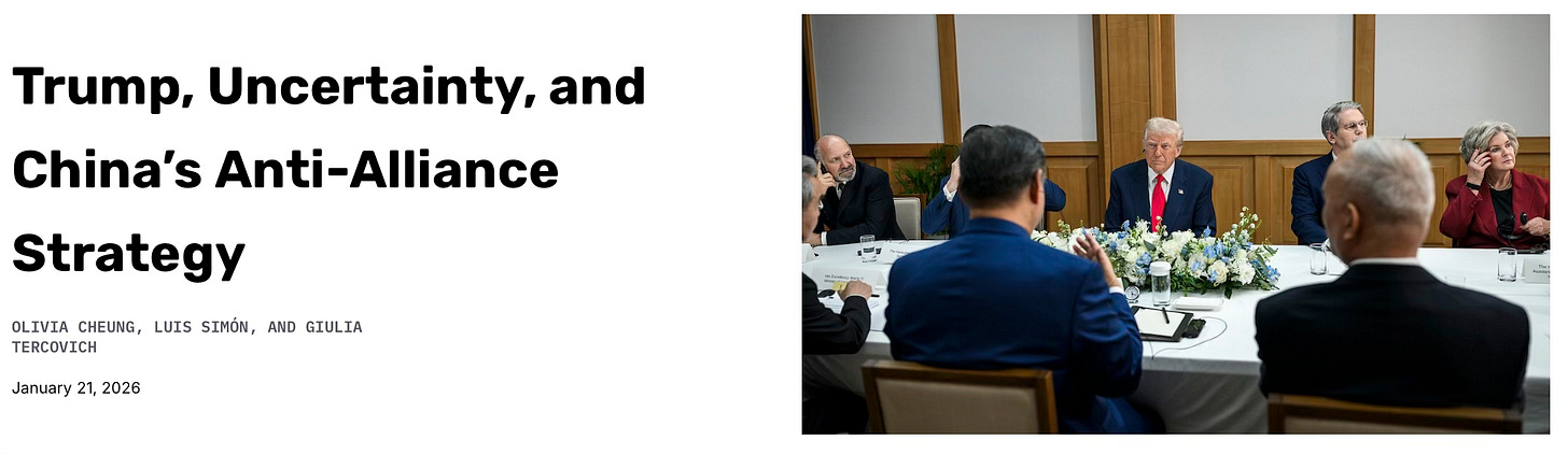 In this piece, the authors examine how China is executing a global strategy to break down alliances which it sees as hostile to its national interests. Most importantly, it is focussed on America’s alliances. As the authors note: “China’s strategy does not aim at dramatic alliance rupture. More attainable — and more valuable —outcomes include hesitation, fragmentation, and drift.” The full article is available to read here at War on the Rocks.