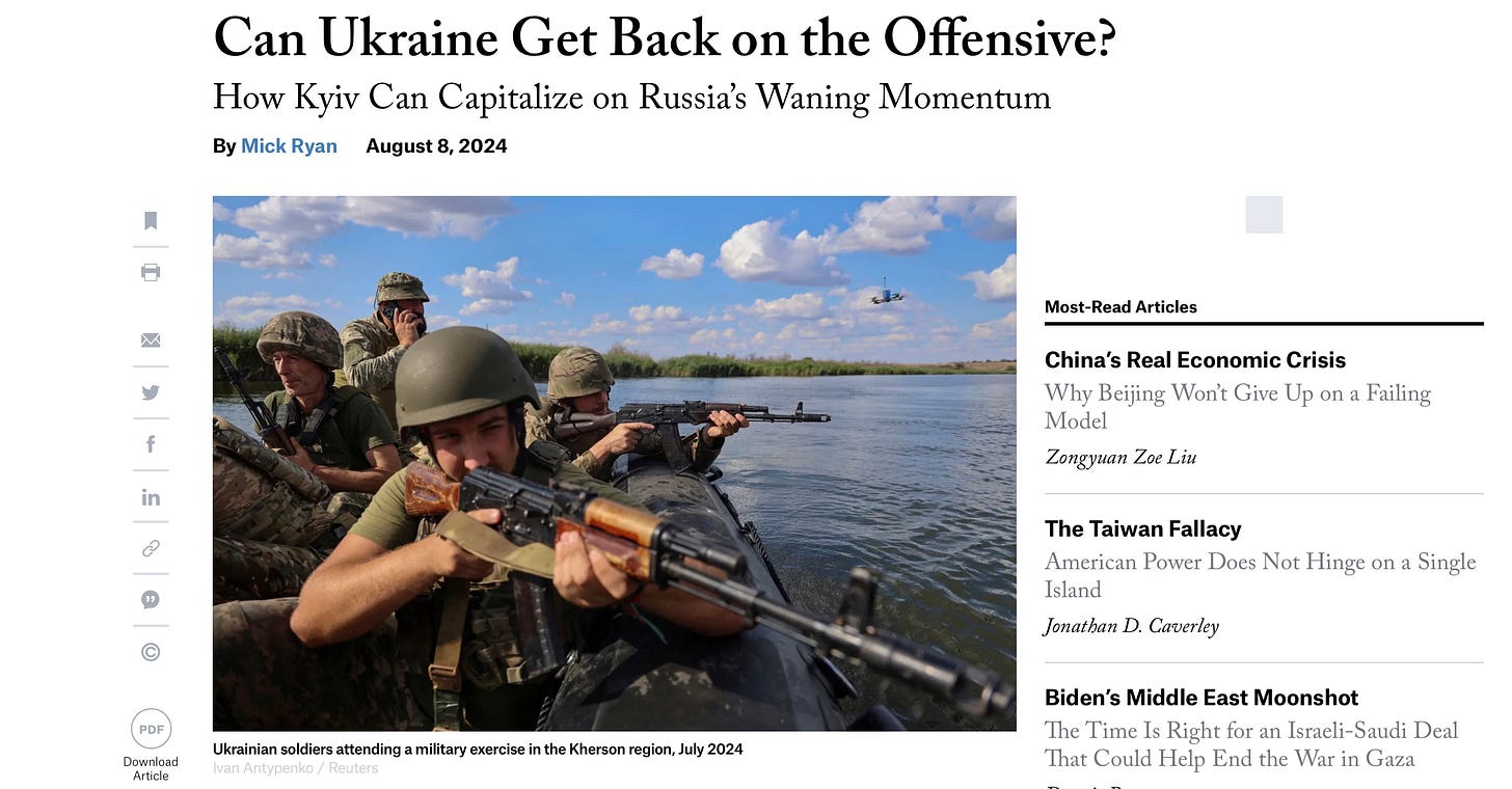 I wrote this article in the past month and it has been published by Foreign Affairs today. Given Ukraine’s cross-border attack into Russia’s Kursk region in the past few days, the timing of the article is useful as it explores Ukraine’s theory of victory.