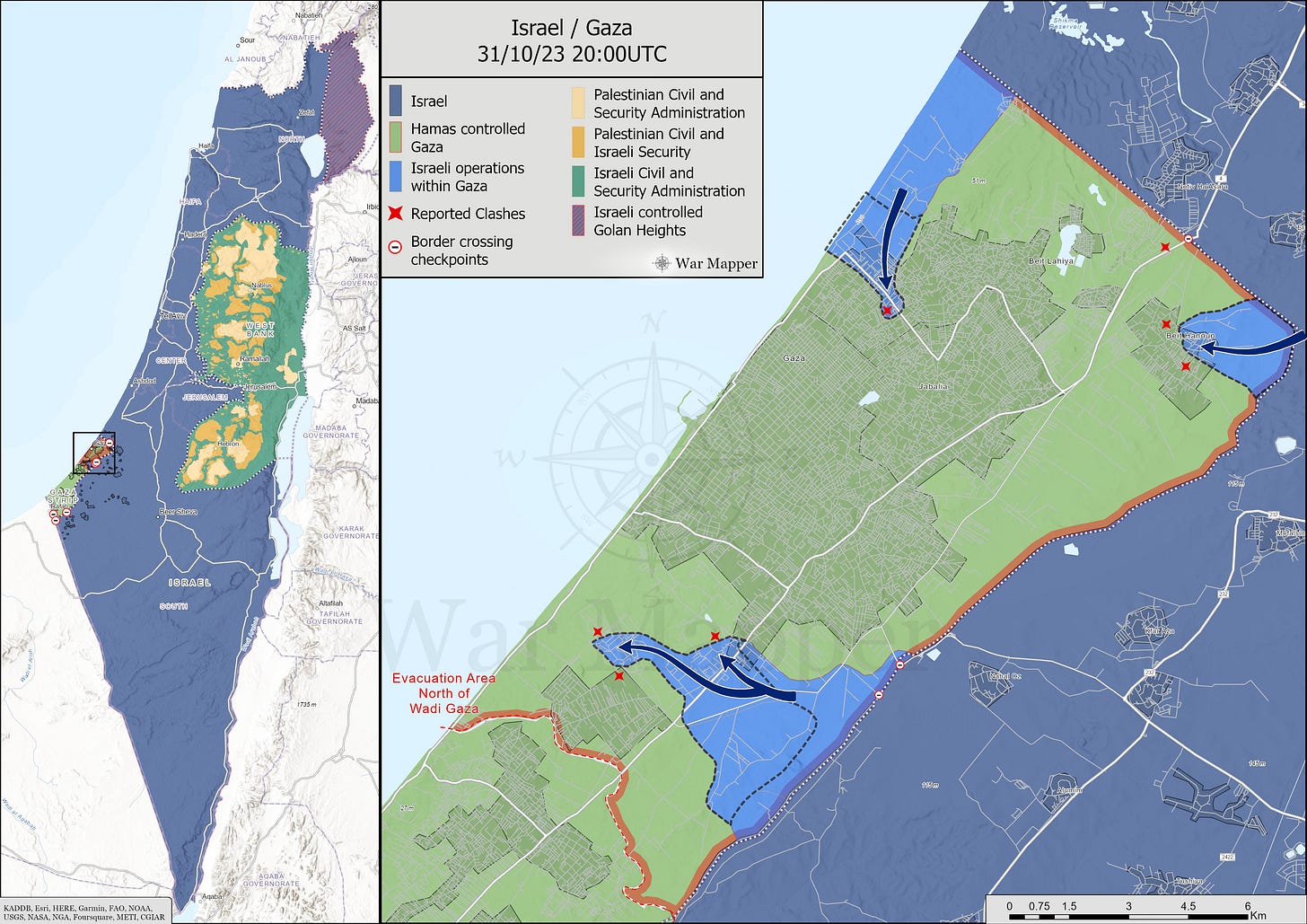 As the most recent maps from War Mapper demonstrate, the Israeli’s are conducting an advance into Gaza on three separate axes: