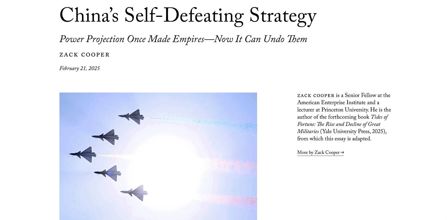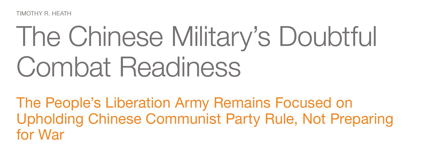 This week, I have included two articles that explore the Chinese military. One is a report that is focussed on their military readiness and whether they are fully capable of invading Taiwan. The other looks at the development of China’s military force projection capacity and whether they may have missed the boat, and built the wrong kind of force too late.