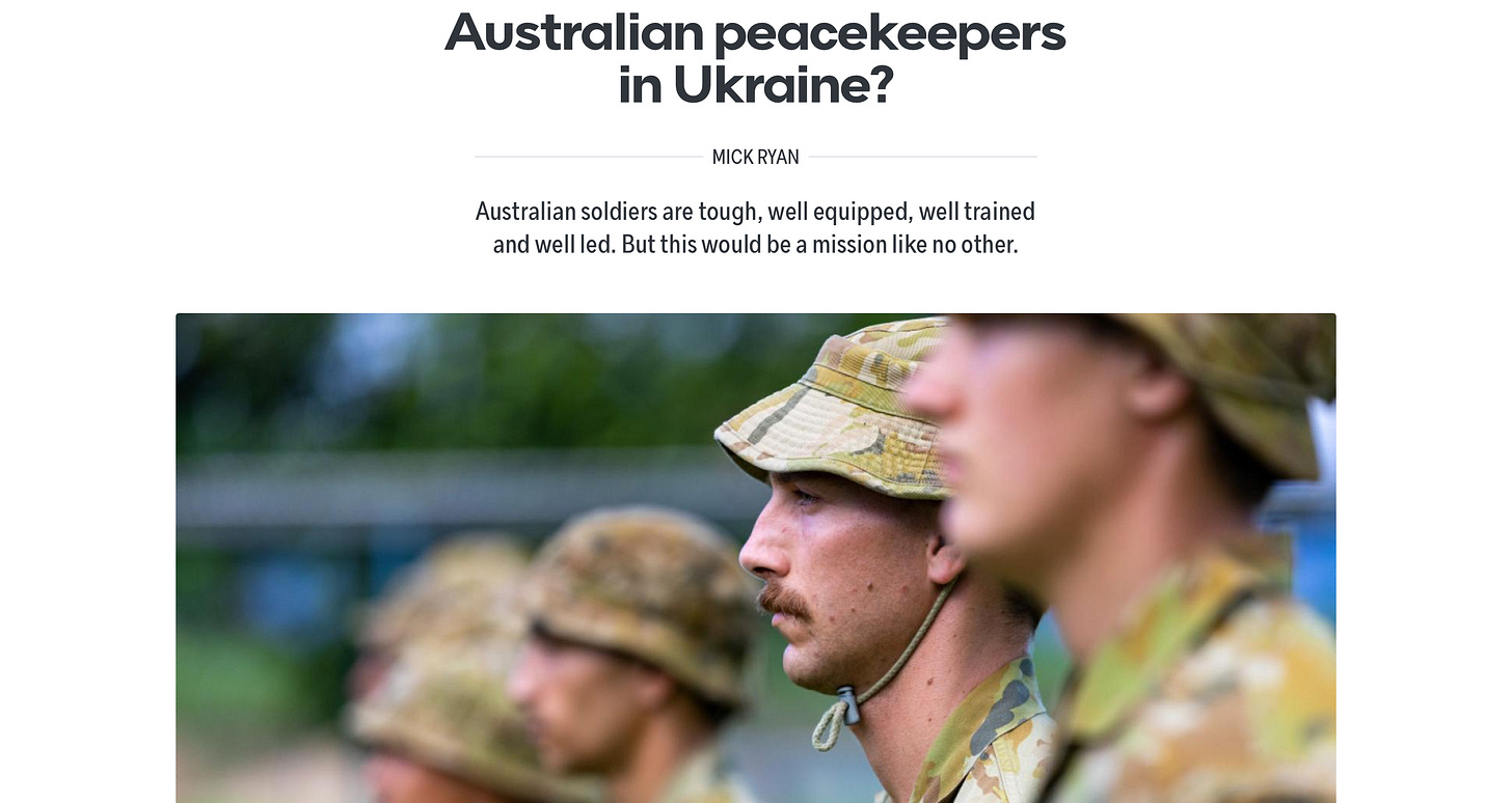 Our deployment is predicated on the understanding that we will be going as peace keepers. I don’t see Putin agreeing to either a ceasefire or peace. So the chances of Australians deploying to Ukraine are slim.