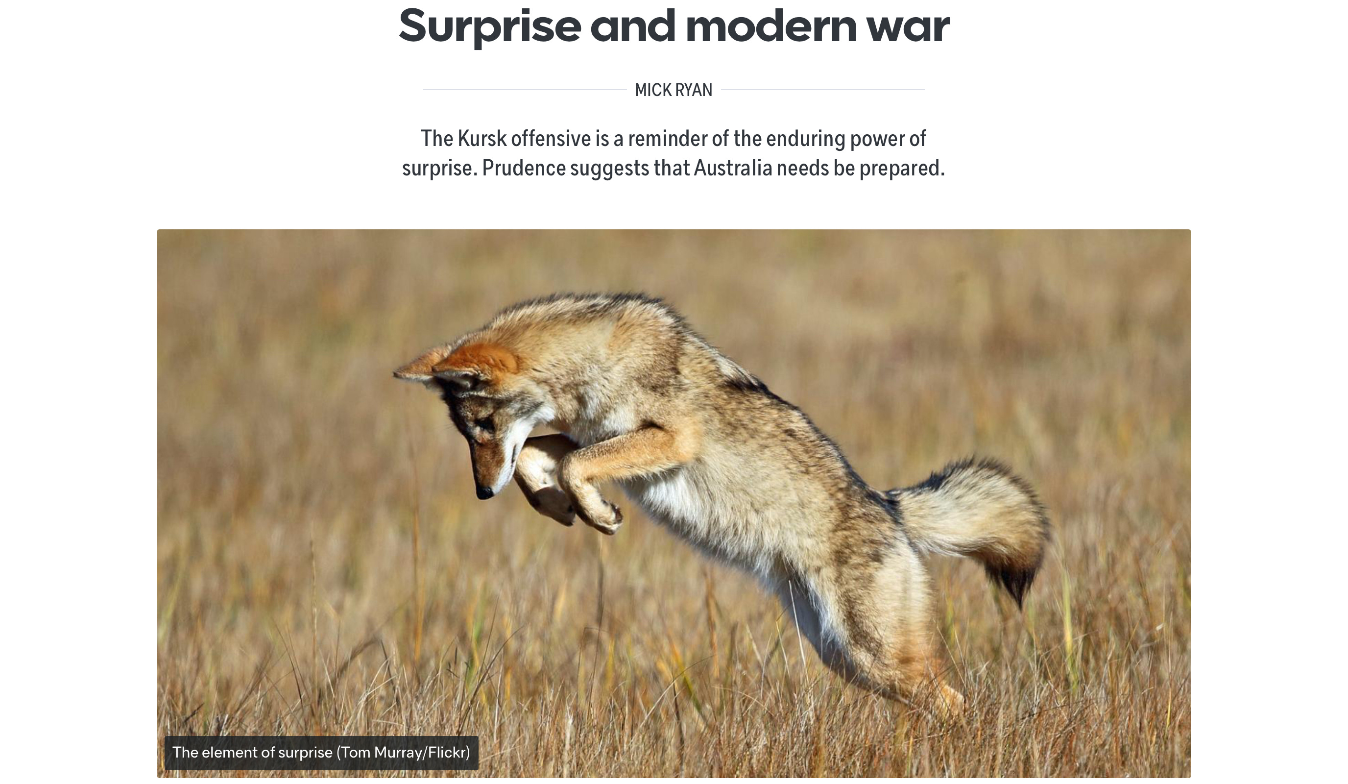 The Kursk offensive is a reminder of the enduring power of surprise. Prudence suggests that Australia needs be prepared.