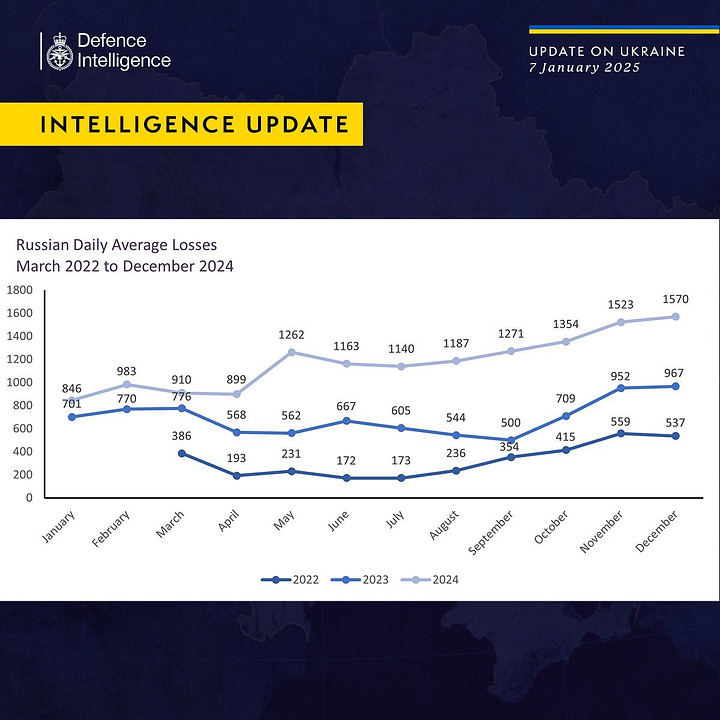 This decrease is likely to be the result of the combination of weather conditions, the large numbers of casualties suffered in previous months, and the ongoing willingness of the Ukrainians to trade a bit of ground for a lot of Russian casualties (see the update from British Ministry of Defence below).