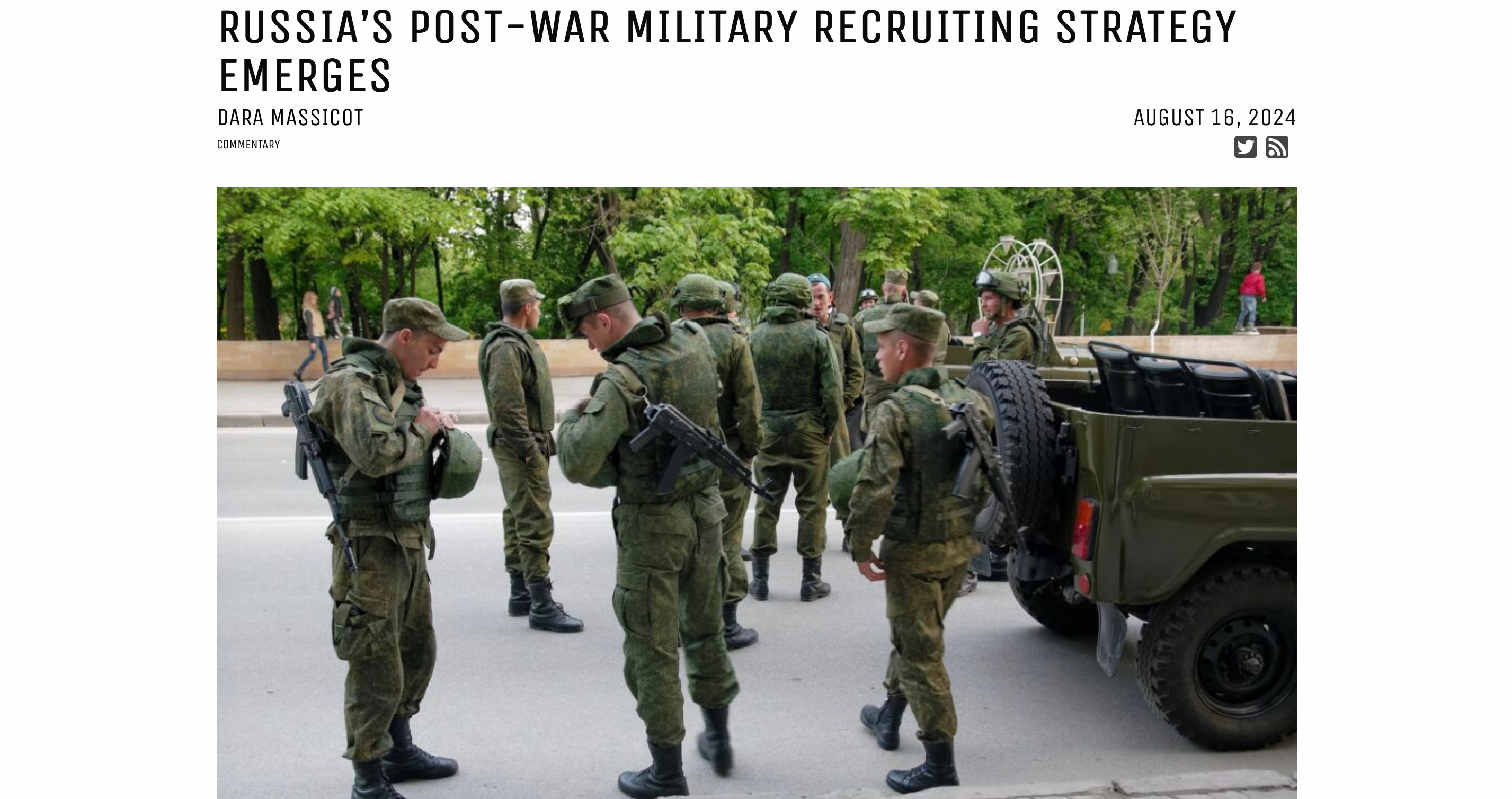 This is a fascinating and insightful article from Russia expert, Dara Massicot. The article begins with the question “While the Kremlin may have a strategy, will enough of the Russian population want to join the military when the war is over?” The article explores a range of issues related to perceptions of military service in Russia and how the Russian military might seek to rebuild its military in the wake of the war in Ukraine. You can read the full article, published by War on the Rocks, here.