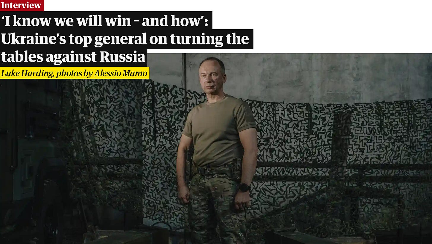 This week, The Guardian published an interview with the Ukrainian Commander-in-Chief, General Syrksyi. It was a wide-ranging interview, covering topics that included the arrival of F-16 fighter jets, loss ratios between Ukraine and Russia, the progress of the ongoing Russian ground offensive and evolving battlefield tactics. It is well worth a read. You can find the full piece here.
