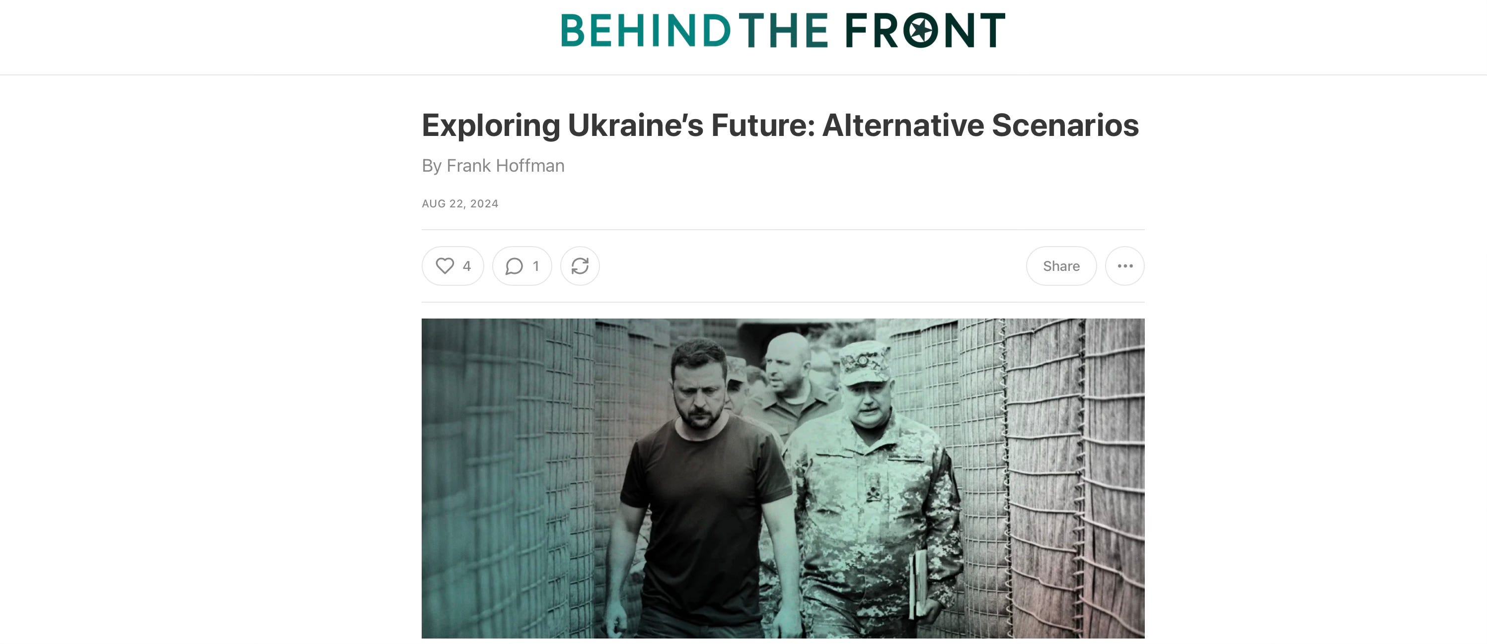 Frank Hoffman begins this outstanding piece noting that “wise leaders recognize that history does not follow a fixed linear path, and that the greater the uncertainty, the greater the value of examining alternative futures.” He then lays out four different scenarios and their potential impacts on the ongoing war in Ukraine and Russia. I always find these kinds of intellectual exercises interesting and useful - they help us consider different options, and understand different strategies. You can read the full article here.