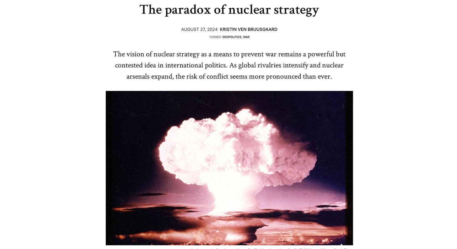 This is a useful and timely piece that re-examines nuclear doctrine in the wake of the Russian invasion of Ukraine and China’s expanding nuclear arsenal. As the author notes, “almost 70 years after their ascendancy, the risk of the use of nuclear weapons in conflict seems larger than ever.” While we may have forgotten these weapons still exist during the days of counterinsurgency operations in Iraq and Afghanistan, Putin’s nuclear sabre rattling and China’s increased investment in nuclear capabilities is resulting in a greater attention to curbing the likelihood that these weapons are used in future. You can read the full article here.