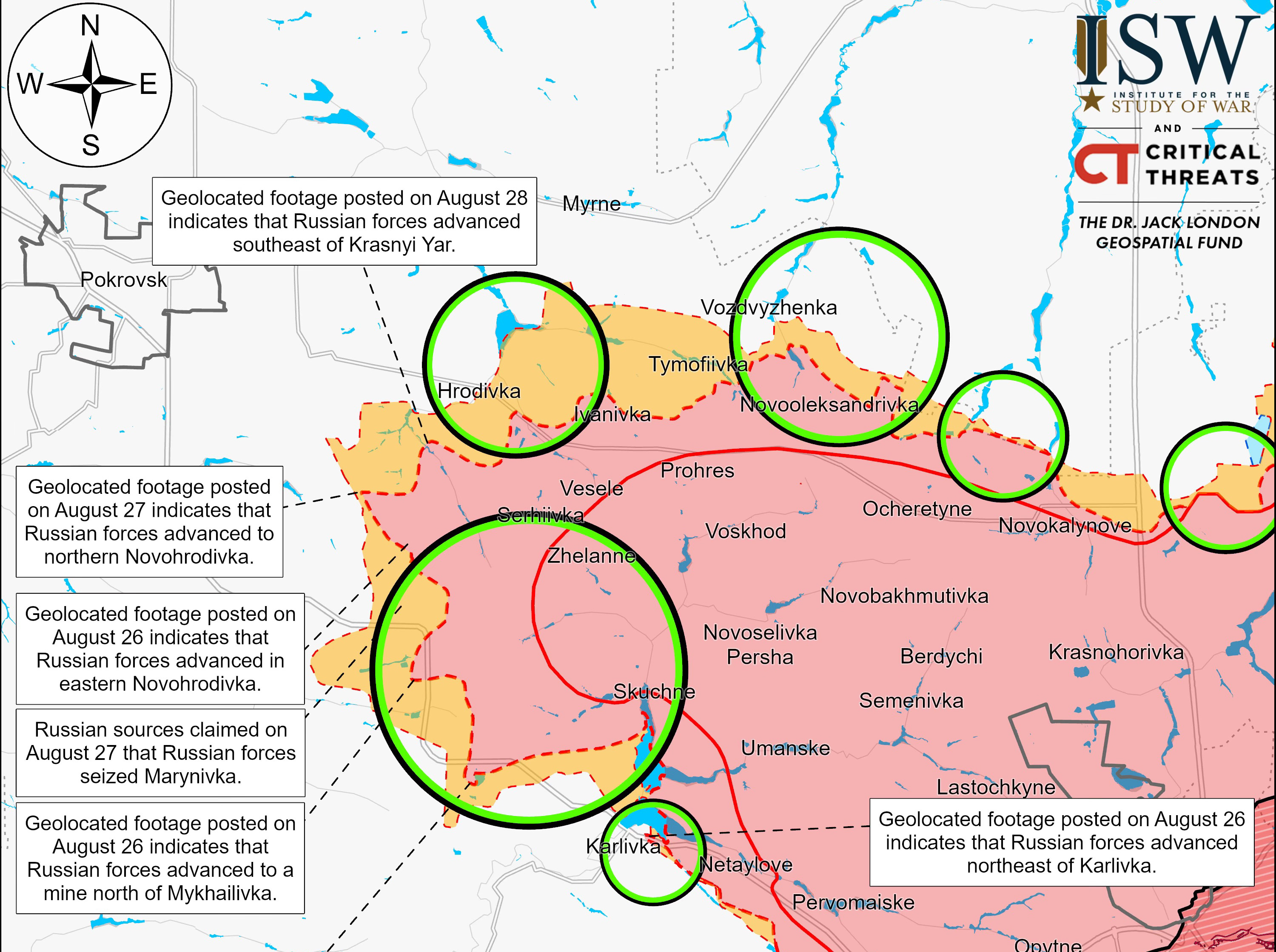 While the Pokrovsk axis of advance may be its main effort, Russia also continues to advance in other parts of eastern Ukraine. As the daily report from the Centre for Defence Strategies notes, in just the past 24 hours, “on the Lyman direction, Ukrainian forces halted 14 enemy assaults near Hrekivka, Druzhelyubivka, Novosadove, Makiivka, Nevske, and Novoyehorivka. On the Siversk direction, five attacks were repelled near Bilohorivka, Spirne, and Verkhniokamyanka. On the Kramatorsk direction, Ukrainian troops thwarted 11 Russian attempts to breach defenses near Hryhorivka, Ivanivske, Bila Hora, Klishchiivka, and Andriivka. The enemy made 21 attempts to advance on the Toretsk direction.”