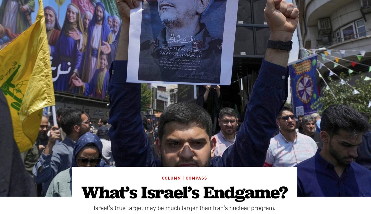 There is an article from Politico that explores Israel’s potential end game for Operation Rising Lion, an article on reform within the Chinese PLA, and an interesting piece on a new, large stealthy aircraft being developed by China.