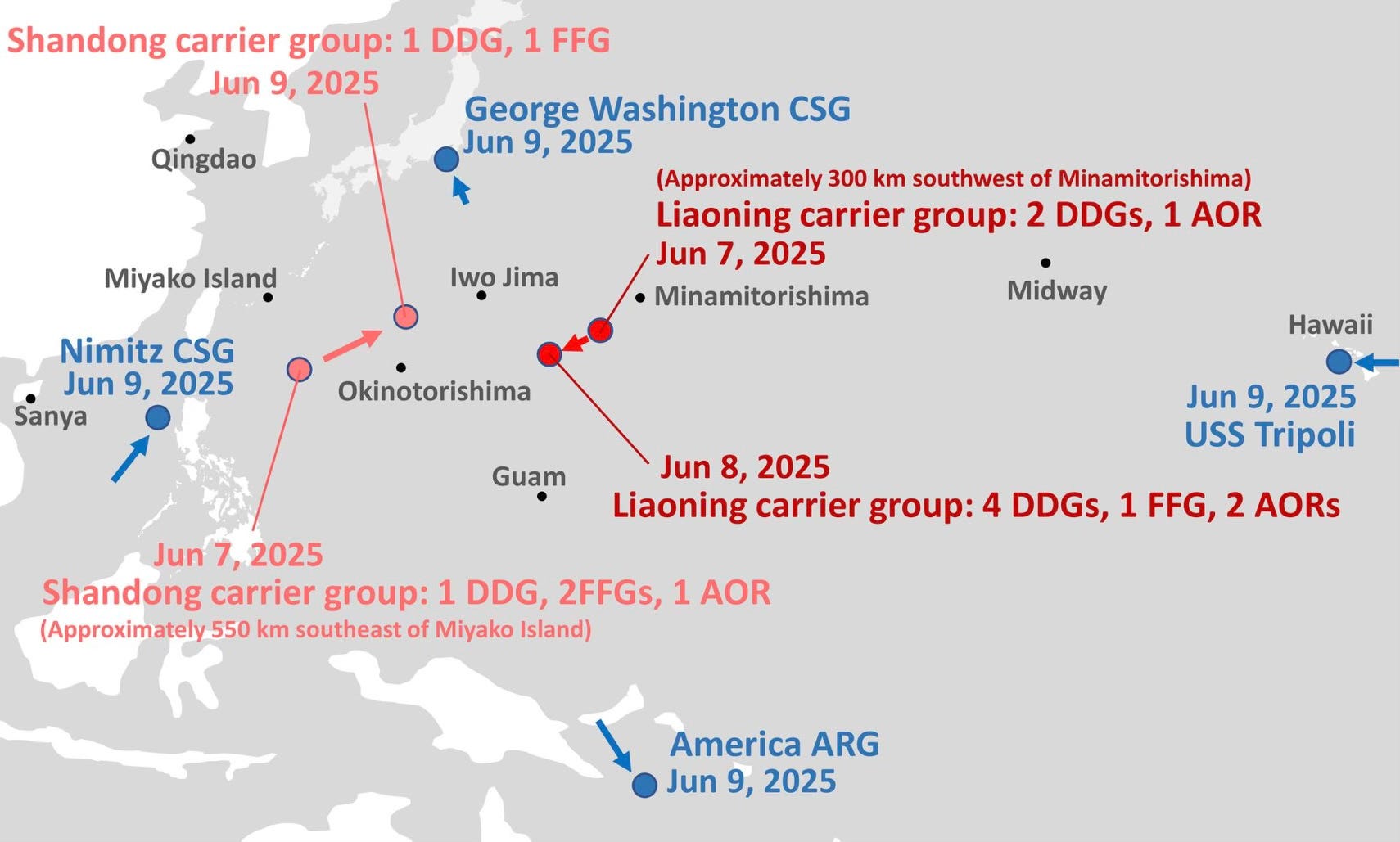 Chinese Carrier Deployments. The key news this week has been that China has deployed two aircraft carrier battle groups beyond the first island chain for the first time. The two carrier battle groups, based around the carriers Shandong and Liaoning have been operating to the south west and the south east of Iwo Jima.