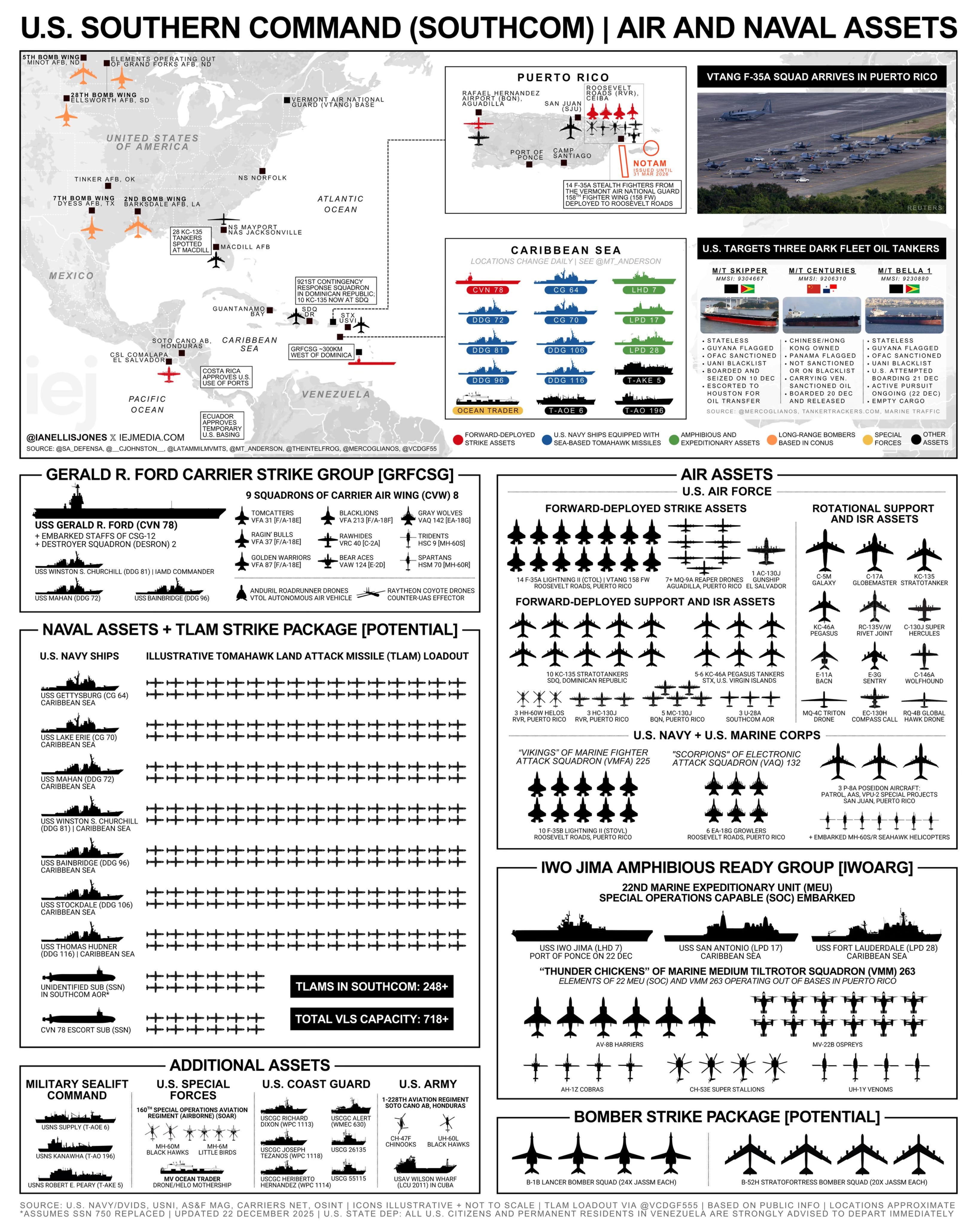 It followed a multi-month build up of U.S. military forces in the region. As the chart below produced by Ian Ellis Jones shows, the Trump administration had the forces in place for a range of different activities against the Maduro government. In the end, it chose to conduct a short, limited objectives mission focused on the capture of the Venezuelan president.