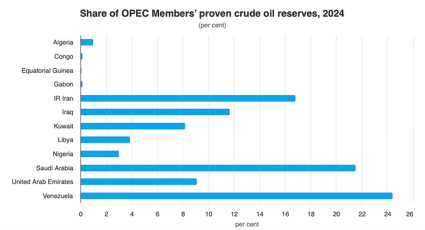 As the 2024 OPEC chart below shows, Venezuela has a lot of oil: